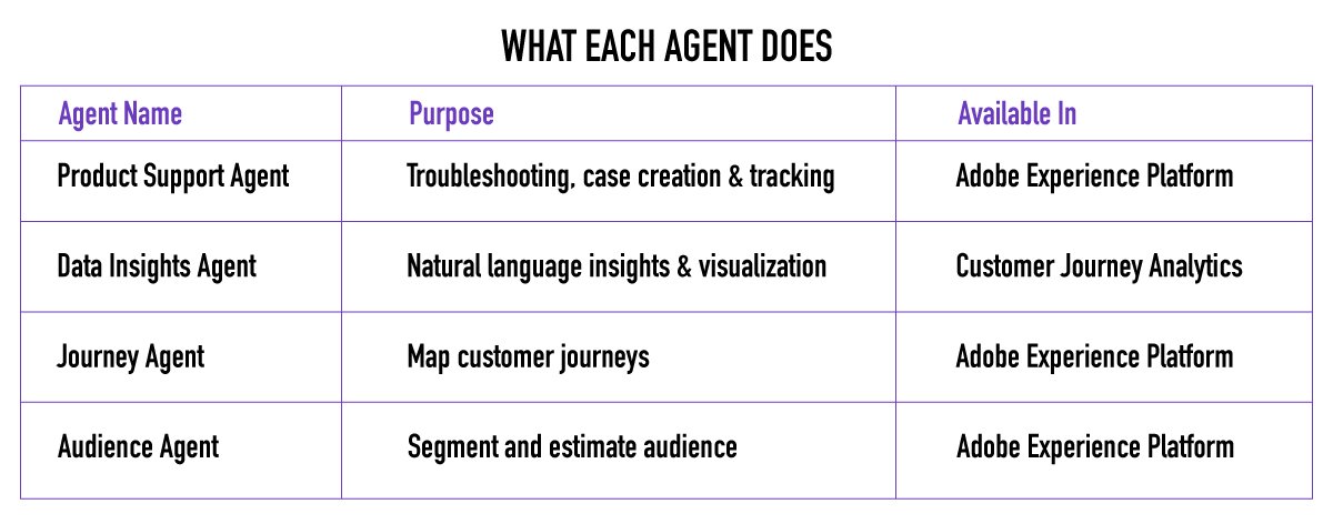 Product Support Agent:Available to Adobe Experience Platform users with the Generative AI rider.