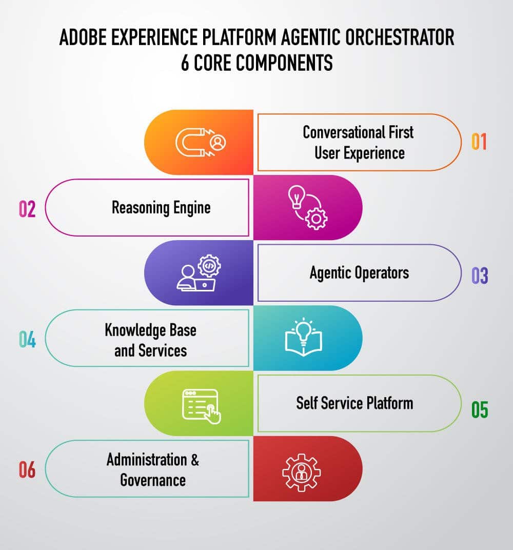 The Agent Orchestrator acts as the control center. Built into Adobe Experience Platform, it enables multiple agents to collaborate through a single interface: the AI Assistant.