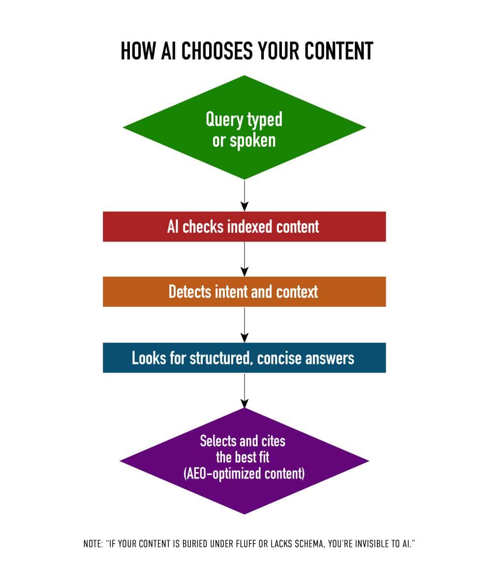 In the past, ranking high on Google was the goal. You added keywords, built links, and climbed the ladder. But with AEO, or Answer Engine Optimization, the rules are different. You’re not just trying to rank, you’re trying to be chosen.