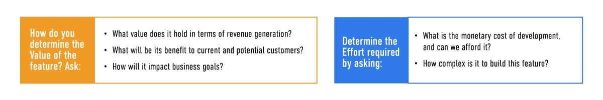 The aim should be to prioritize those features that hold more value and can be created with less effort.