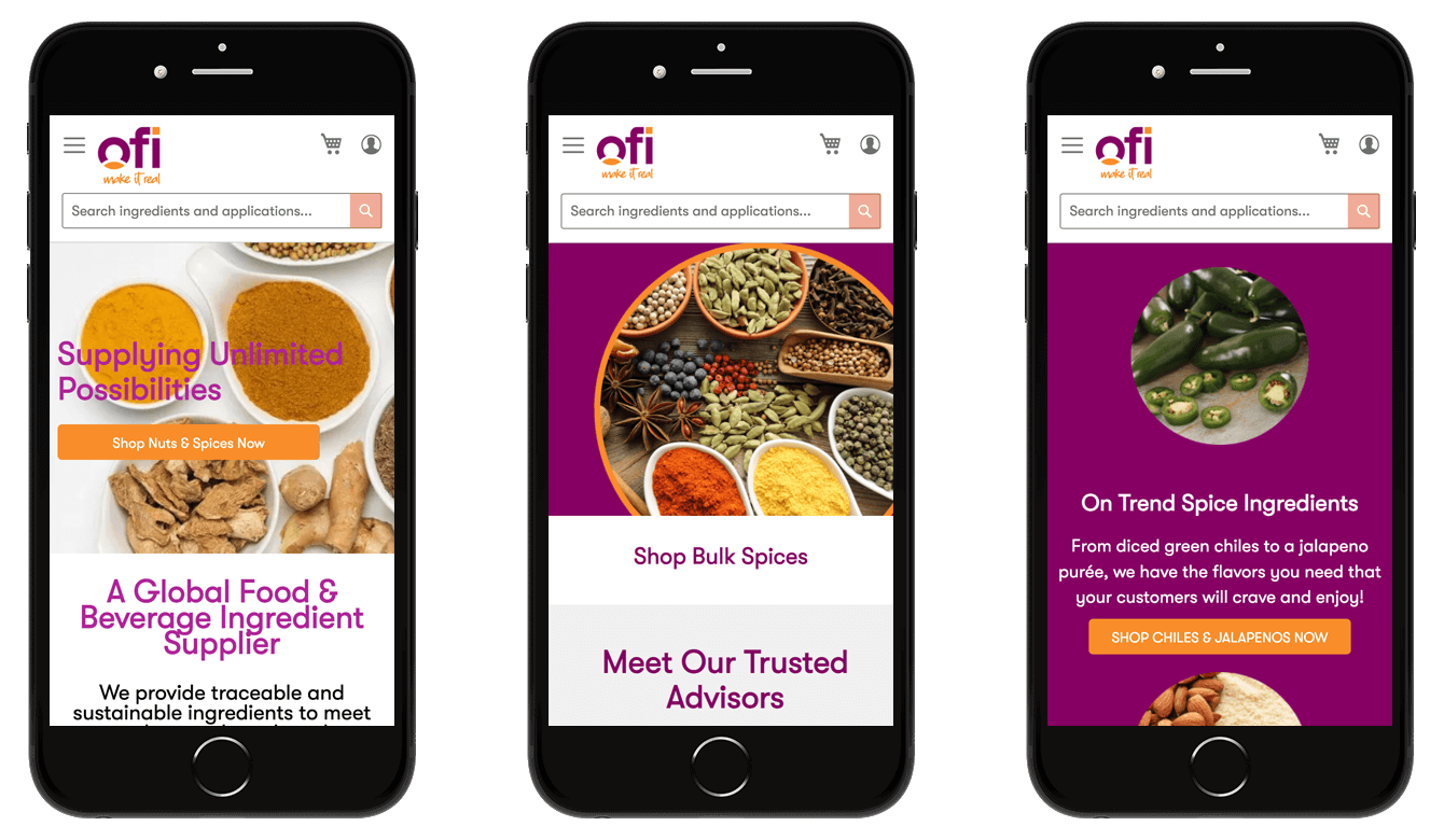 Zififty’s Adobe Commerce experts migrated product data, customer data and orders from olamnuts.com and olamspices.com. We then rebranded the store olamspices.com into shop.ofi.com. Customers can surf through products under Nuts and Spices offerings to place orders.